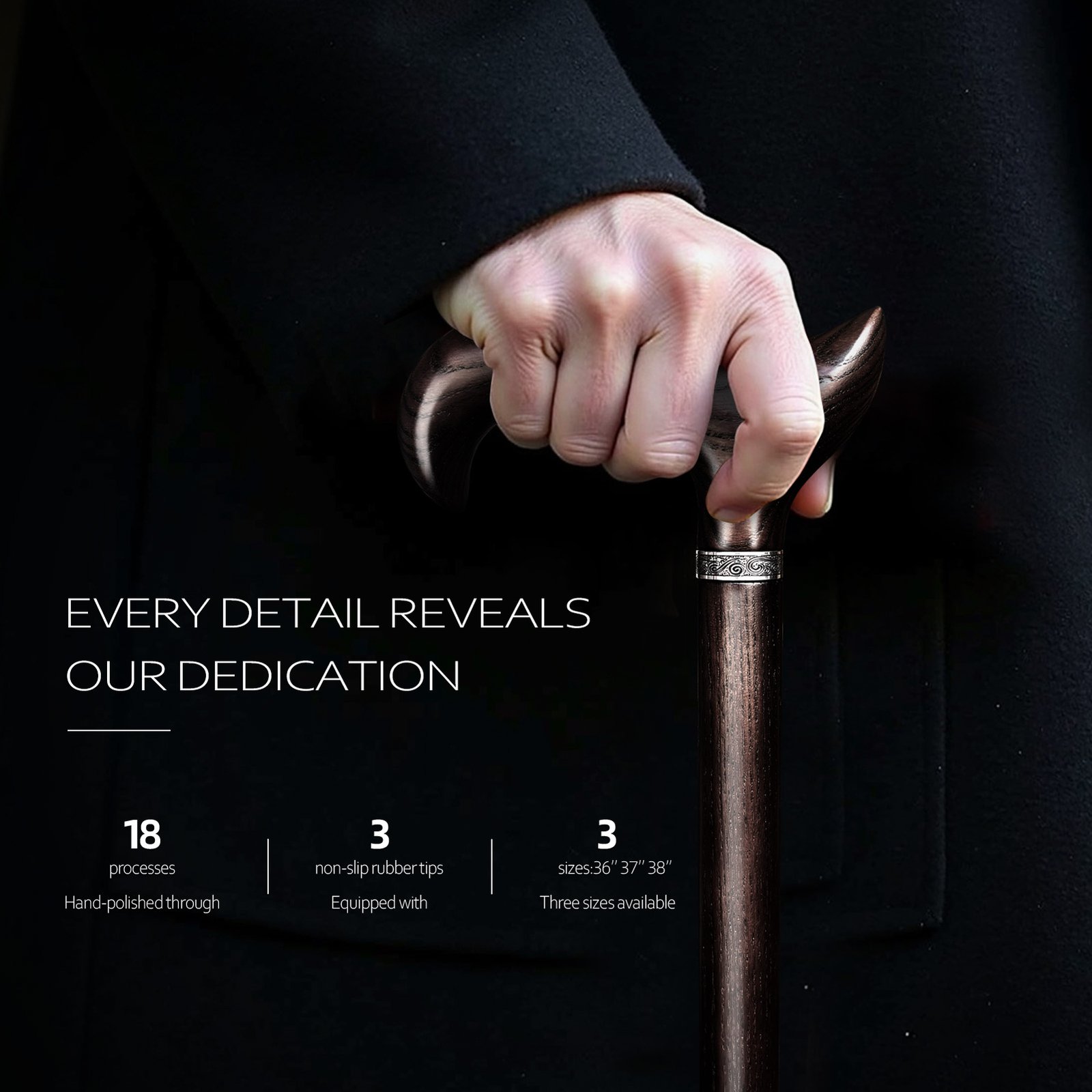 👉【Precise Multi-Size Height For Elegant Walking】True elegance lies in perfect fit. Our elegant cane offers three precise heights (36, 37, and 38 inches). You can choose the most suitable size based on your height, ensuring the most elegant posture and effortless support while walking, providing a tailored and premium experience,If you require a different size cane please contact us before placing your order, this will take approximately 4-5 weeks