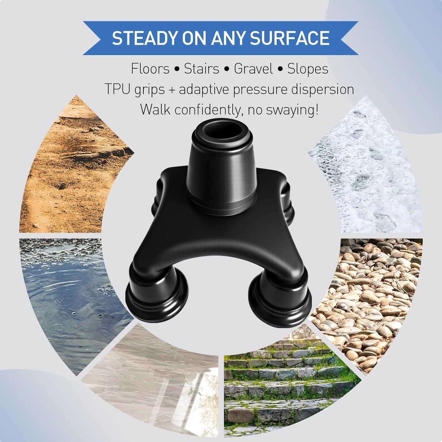 🛡️【Lightweight, Stable & High Resilience —Innovative Polymer】 This quad base employs reinforced polymer PP material through precision engineering, achieving a perfect blend of high-strength support and exceptional impact resistance. Its robust structure absorbs shocks while enabling instant rebound to prevent deformation, delivering rock-solid stability. The ultra-light design significantly reduces hand pressure, ensuring stable support and effortless mobility